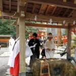 22日には仕事の関係で神田明神様へ、そして24日には松坂の椿大神社へ向かいました。一年ぶりに山本宮司様にお目にかかり、正式参拝の後、お茶室にて一服。その道中に素晴らしい出会いがありました。まさしく、手水舎にて新郎新婦が神前結婚式「椿婚」に向かう道中。夫婦の神様に見守られ新たな絆を結ぶ景色でした。