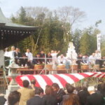 日頃から大教院でお世話になっております真中神社の竣工祝賀際に、大会議長として参列してまいりました。式典の最後には境内で信者さん達に向け紅白のお餅がまかれ、大変な賑わいとなり、私も福分けのお裾分けをキャッチしました。