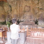大分の臼杵に着くまで遠くの島々や海を眺め、やがて訪れた沈む夕日の美しさに”無心”のひと時を味わいました。臼杵の薬師の湯でおいしい料理とまったりとした湯をいただいた翌日、国宝・臼杵石仏へ。平安時代の後期に岸壁に刻まれたという60体あまりの磨崖仏群ですが、誰がどのような目的で彫ったかは、わかっていないようです。とくに写真の大日如来像は圧倒的な迫力と存在感を見せていました。