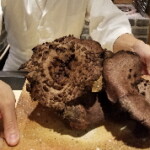 そこで頂いた食事は目の前で調理し差し出してくれるカウンター形式。その都度食材を見せて下さり説明もあり、初めての触感や香り、味わいを楽しみました。大きな椎茸や丸焼きのうなぎも、さすが蒲焼(がまやき)です。