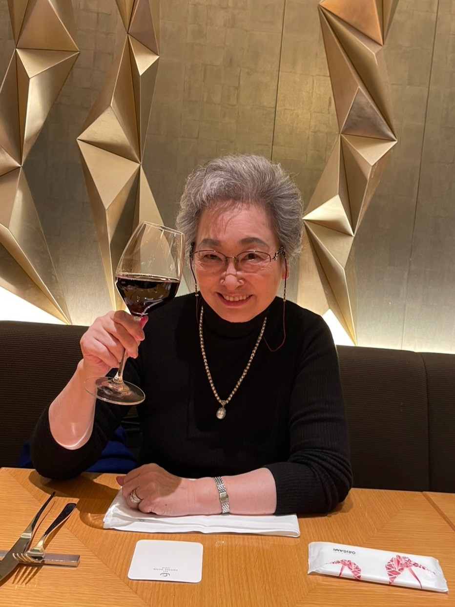 二次会では、久しぶりのワインで手も顔も赤くなってご機嫌です。