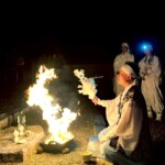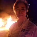 法螺貝の大行列を先頭に大祓祝詞、ご真言を唱える宮司様や神主の列、大きく組まれた松明の周りを信者数百人が回る光景は圧巻。山神様もきっと歓んでおられると思いました。