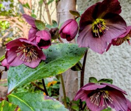 18日、我が家の猫庭に植えたクリスマスローズが満開です。