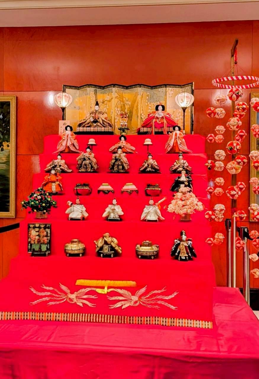14日は京都から上京してきて下さった友人の友人と皇居前のホテルで会食。ロビーの設えがお雛様でしたので、記念にパチリ。
