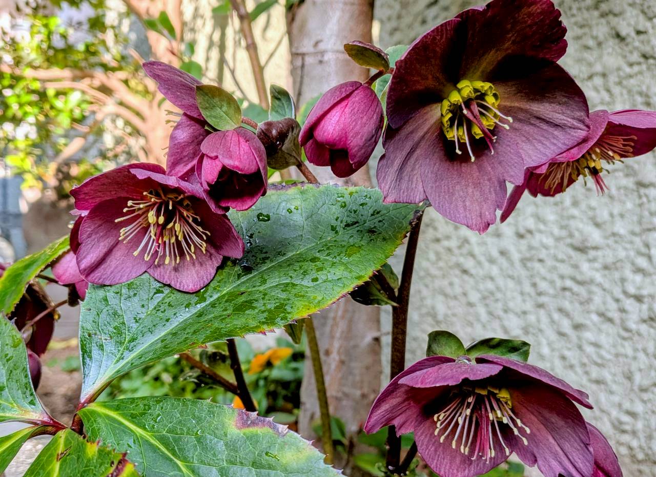 18日、我が家の猫庭に植えたクリスマスローズが満開です。