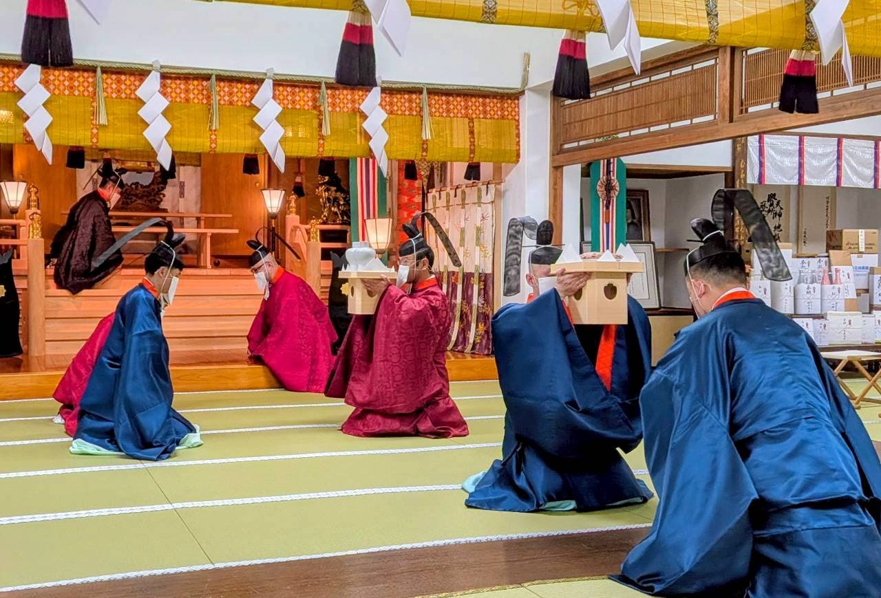 21日には麻布の大教院で春季大祭に参列し、身も心も清々しく、釜鳴神事の設えもパチリ。